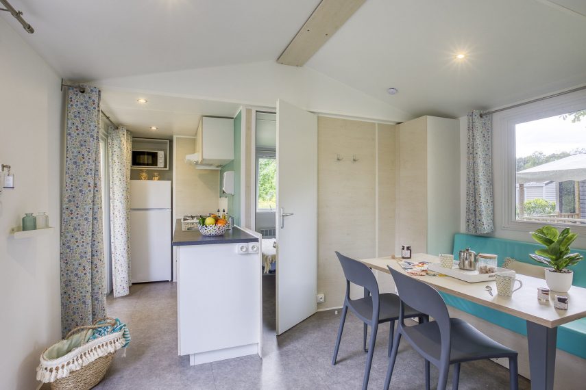 La gamme Mobil home Confort offre tout le confort de base pour un séjour en famille : équipement cuisine, couette et oreillers, terrasse en bois semi-couverte, wifi gratuite, kit d’accueil etc.